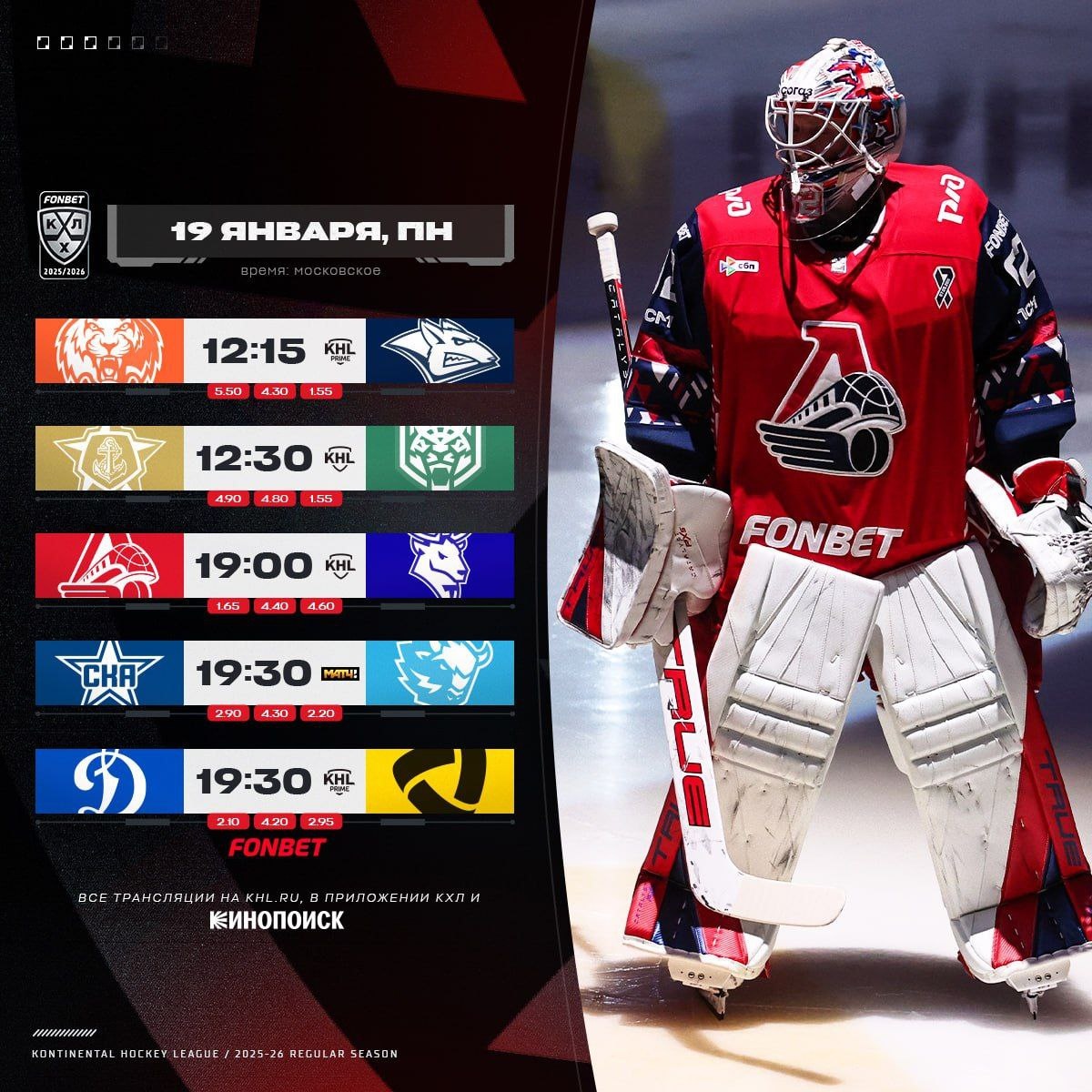 🔥🇷🇺 Расписание матчей КХЛ на сегодняшний день!