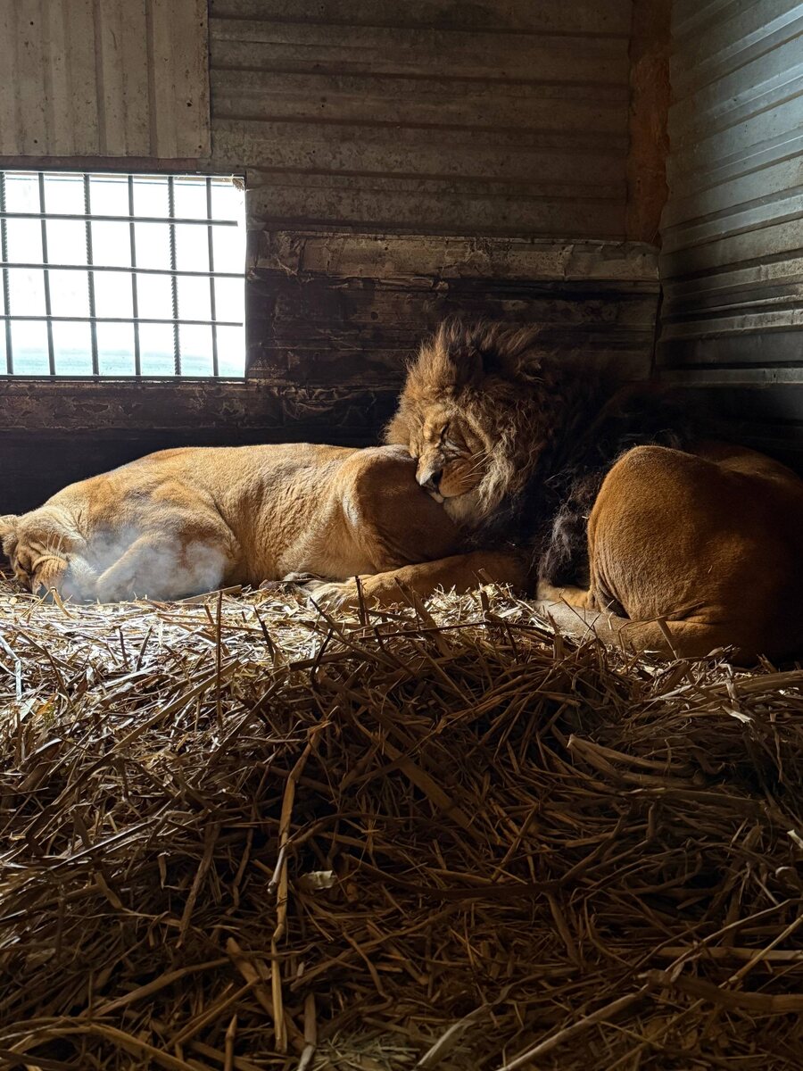 🥰 Самая стабильная и прочная пара в нашем зоопарке - Симба и Диана 🦁 Их история началась, когда они были молоды и полны энергии. Симба, с его царственной гривой и спокойной уверенностью, и Диана, грациозная, умная и немного более осторожная. Только в условиях полного доверия, здоровья и комфорта хищники способны на такую длительную привязанность. Их гармония — лучшая оценка нашей работы.