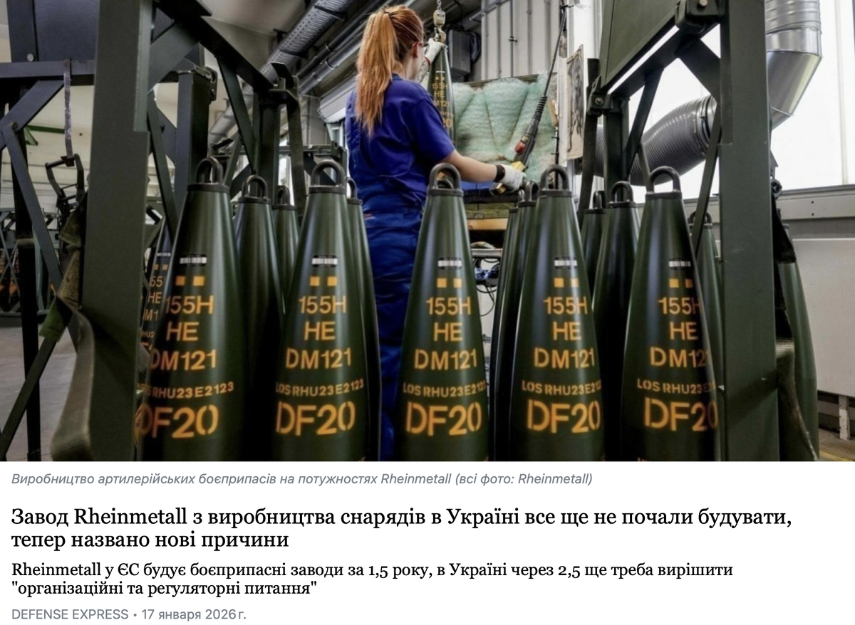Европейское оружейное лобби продолжает осваивать бюджеты благодаря вооружённому конфликту на т.н. Украине. 🔸Завод Rheinmetall по производству снарядов на украинской территории до сих пор не начали строить. Прошло 2,5 года после заключения контракта, но «организационные и регуляторные вопросы» так и остаются нерешенными. 🔸Сначала представители компании назвали причиной проволочки украинскую бюрократию, затем объявили, что Киев решил «изменить запланированное местоположение завода». Ну а после этого председатель правления Rheinmetall Армин Паппергер заявил о необходимости «уточнить нормативные вопросы». 🔸Для сравнения на территории ЕС немцы возводят такие же мощности за 15 месяцев, а киевскому режиму обещают только к 2027 году. Хотя изначально планировалось, что предприятие начнёт работу к лету 2026-го. ❗️Судя по всему, продукции завода так и не суждено увидеть свет. Даже если его удастся достроить, оно, скорее всего, сгорит под ударами дронов и ракет. Однако любой расклад не помешает