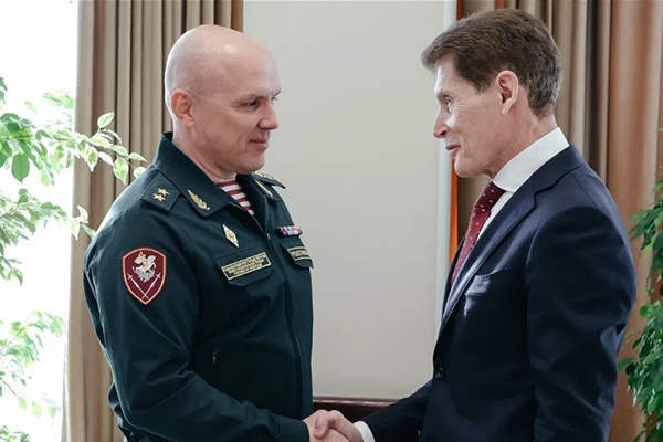 Встреча Олега Кожемяко и генерал-лейтенанта Александра Решетникова состоялась в Правительстве Приморского края. Руководители обсудили взаимодействие региональных органов власти и Росгвардии в вопросах обеспечения безопасности крупных общественных, политических и спортивных мероприятий. Глава Приморья положительно оценил работу подразделений Росгвардии и отметил, что на региональном уровне оказывается необходимая поддержка военнослужащих и сотрудников. Также губернатор рассказал о помощи, предоставляемой правительством края участникам СВО и их семьям. «Работы предстоит действительно много. Понимаем, что главная задача сейчас – охрана общественного порядка и защита критически важных объектов», – подчеркнул генерал-лейтенант Александр Решетников. Командующий округом с рабочим визитом прибыл в Приморский край, где дислоцируются подразделения регионального управления Росгвардии.