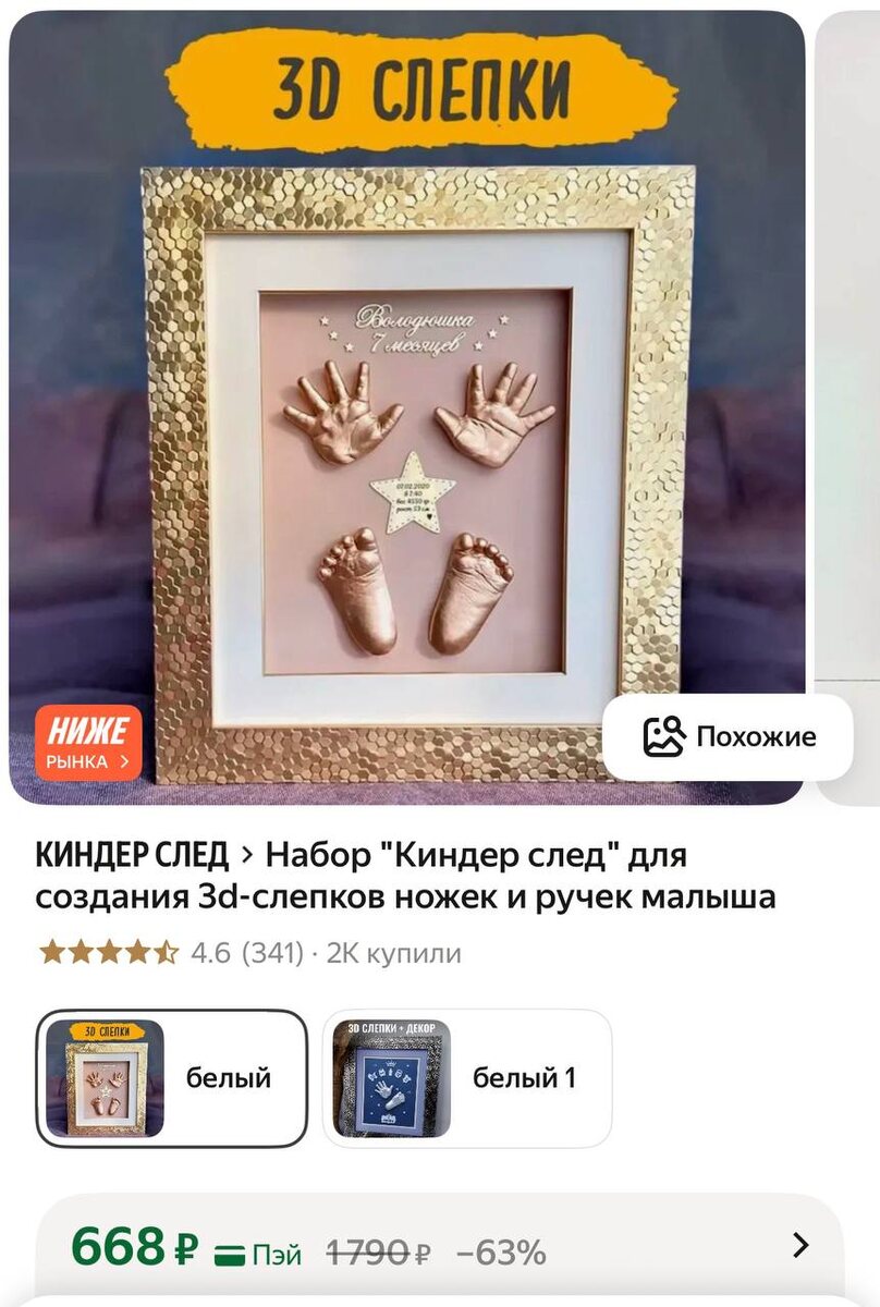 😪😪😴Набор "Киндер след" для создания 3d-слепков ножек и ручек малыша
