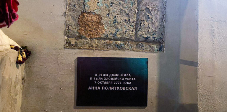 Активисты установили новую мемориальную табличку на доме Анны Политковской