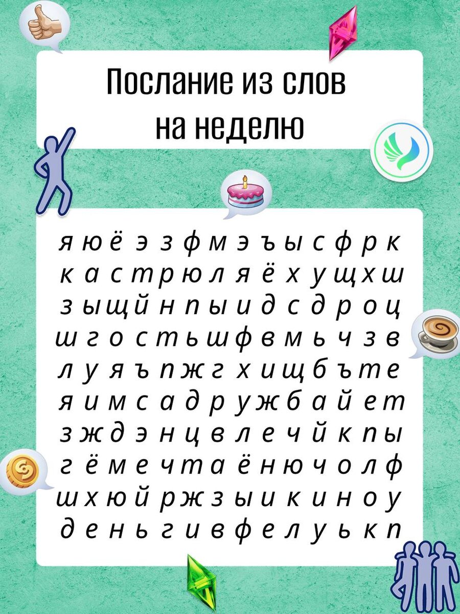 Ваше задание на понедельник: расшифровать это изображение. Это послание — ваш личный ритуал настройки на неделю. Всматривайтесь, находите слова, пусть они станут вашими аффирмациями на ближайшие 7 дней 😌