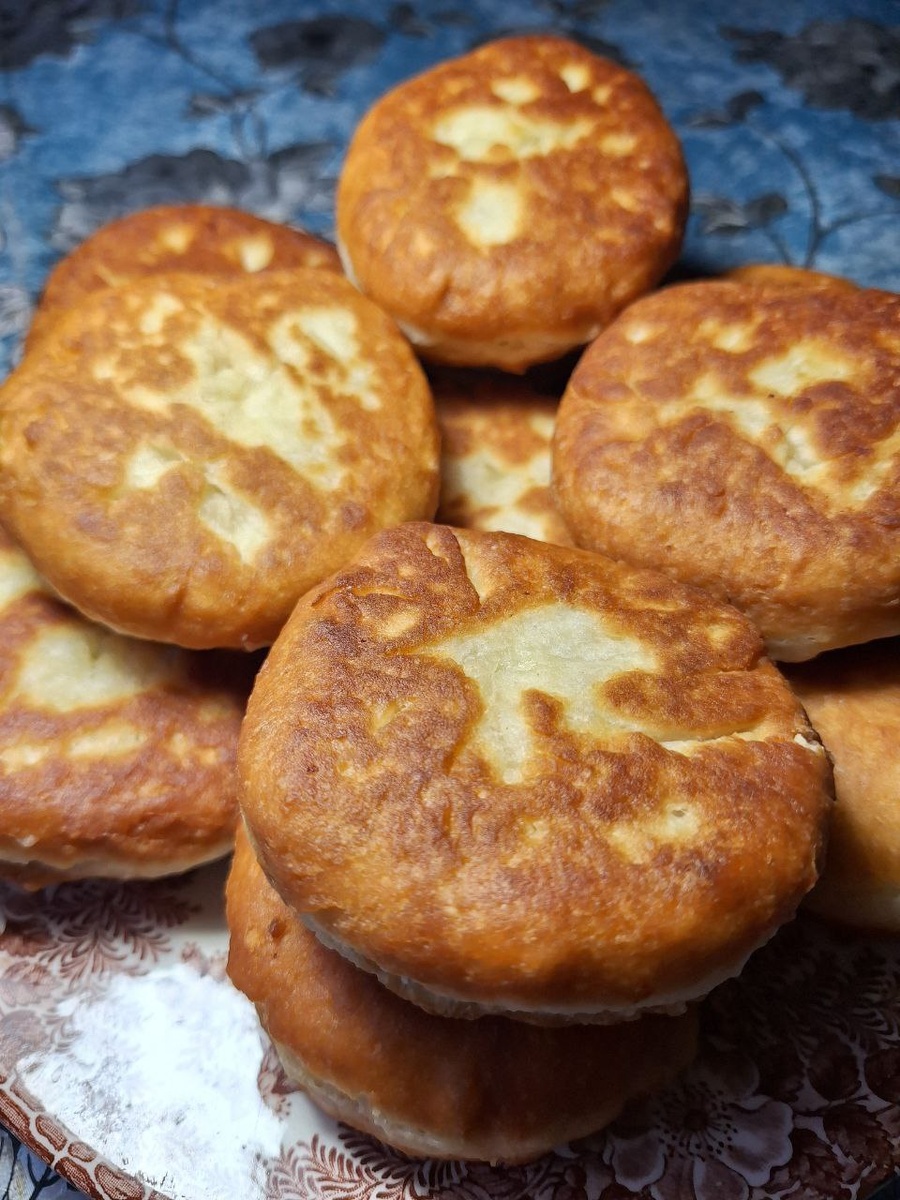 Репчатый лук мелко нарезаем и прожариваем на сковороде с раст.маслом до прозрачности лука. Даем остыть. Остывшим лук добавляем в фарш, солим, перчим, добавляем 30 мл воды для сочности. Все хорошо перемешиваем Готовое тесто делим на 10-11 кусочков, каждый кусочек скатываем в шарик, а затем разминаем пальцами в лепешку, на середину выкладываем фарш, защипываем как на хинкали, слегка придавливаем, т.е. формируем форму беляшей. Обжариваем на раст.масле с двух сторон. Всем приятного аппетита!