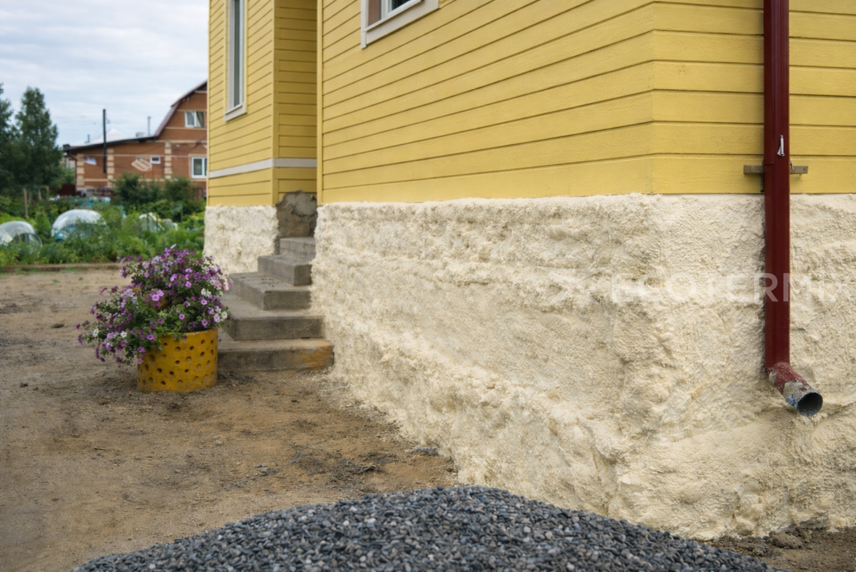 Утепление фундамента пенополиуретаном (ППУ) позволяет создать герметичный тепловой контур без швов и стыков. Это повышает энергоэффективность дома и минимизирует расходы на ремонт фундамента в будущем.