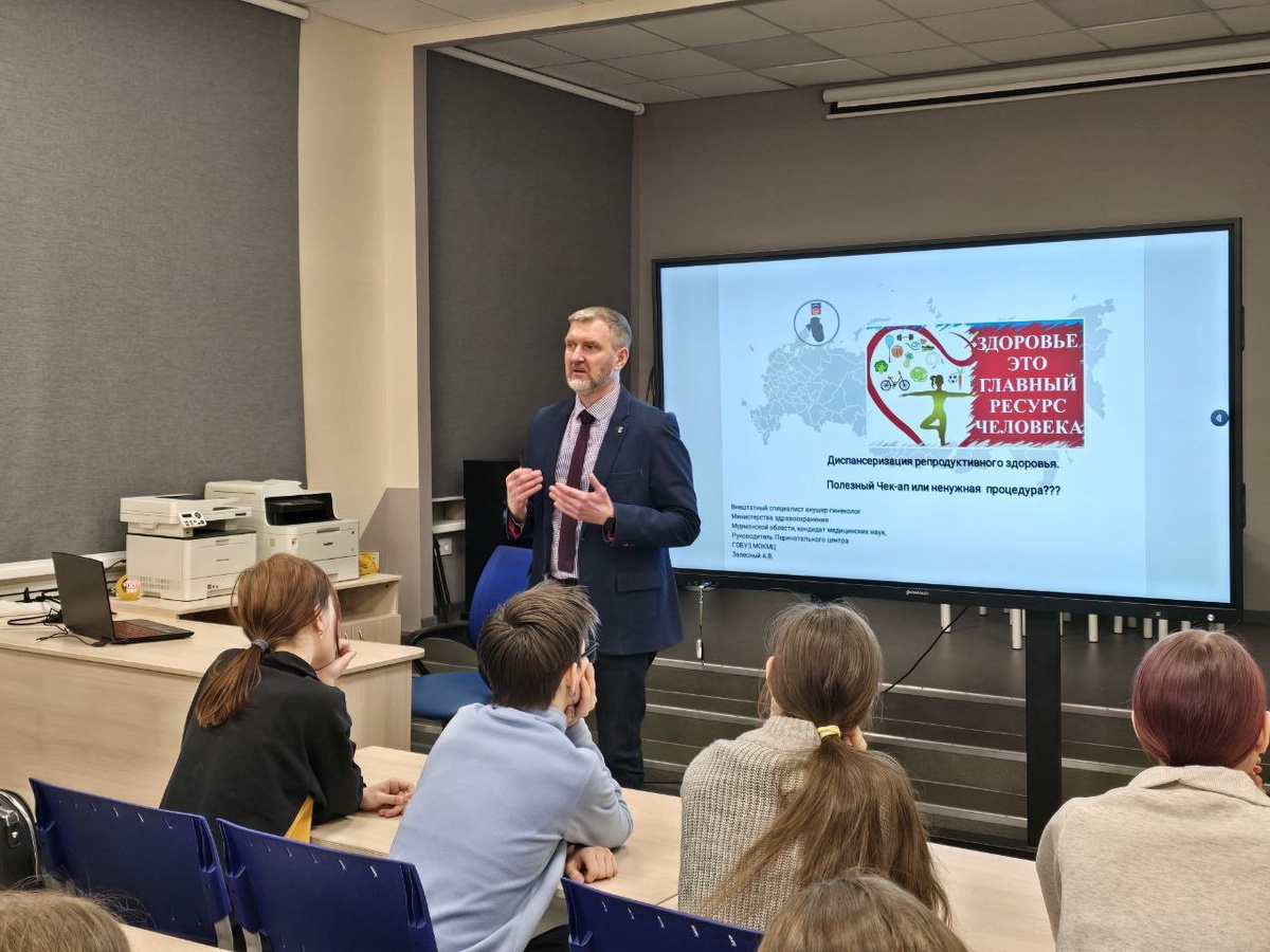 Это стало возможным благодаря реализации нового направления партпроекта «Здоровое будущее» В Мурманском педагогическом колледже состоялось стартовое просветительское занятие для студентов, обучающихся по направлению «Преподавание в начальных классах и дошкольное образование». Заместитель главного врача по акушерству и гинекологии, руководитель Перинатального центра Мурманского областного клинического многопрофильного центра Александр Залесный и заведующий родильным домом Светлана Корсакова рассказали будущим педагогам о диспансеризации репродуктивного здоровья, его значении и профилактике. «Будущие учителя - это не просто будущие родители и наставники, а доверенные взрослые для детей младшего школьного возраста. Именно от них будет зависеть, насколько грамотно и бережно подрастающее поколение подойдёт к вопросам своего здоровья, семьи и ответственного родительства. Благодарю команду колледжа за организацию важной встречи»,