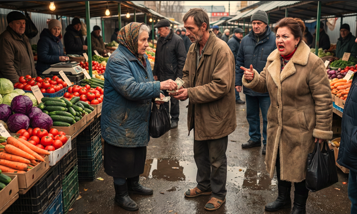 Рынок замер. Тишина стояла такая, что слышно было, как где-то капает вода. Галина, стоявшая с открытым ртом, выронила банку сметаны. Белое пятно расплылось по грязному асфальту, но она даже не посмотрела вниз.