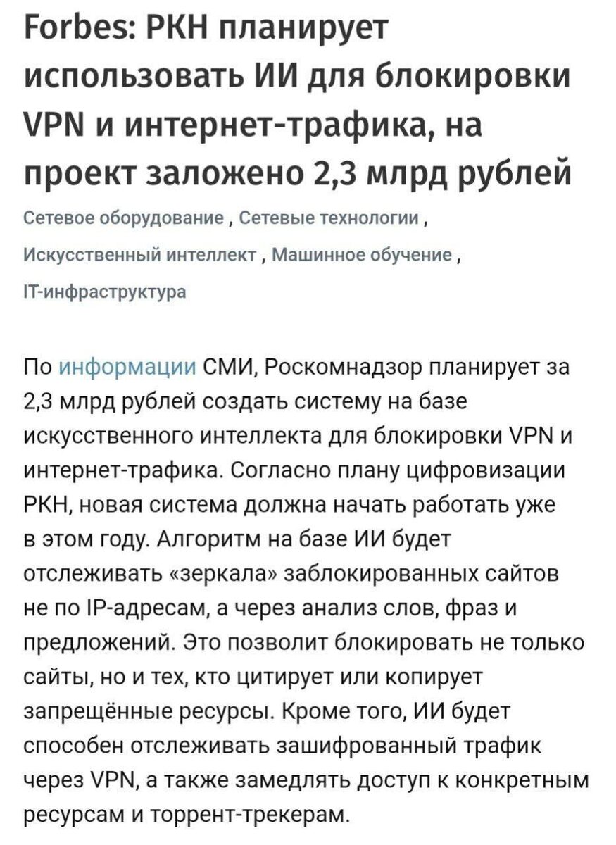 ποΈΠ ΠΎΡΠΊΠΎΠΌΠ½Π°Π΄Π·ΠΎΡ ΡΠΎΠ·Π΄Π°ΡΡ ΠΠ Π΄Π»Ρ Π±Π»ΠΎΠΊΠΈΡΠΎΠ²ΠΊΠΈ VPN ΠΈ ΠΈΠ½ΡΠ΅ΡΠ½Π΅Ρ-ΡΡΠ°ΡΠΈΠΊΠ° Π·Π° 2,3 ΠΌΠ»ΡΠ΄ ΡΡΠ±Π»Π΅ΠΉ, ΠΏΠΈΡΠ΅Ρ Forbes