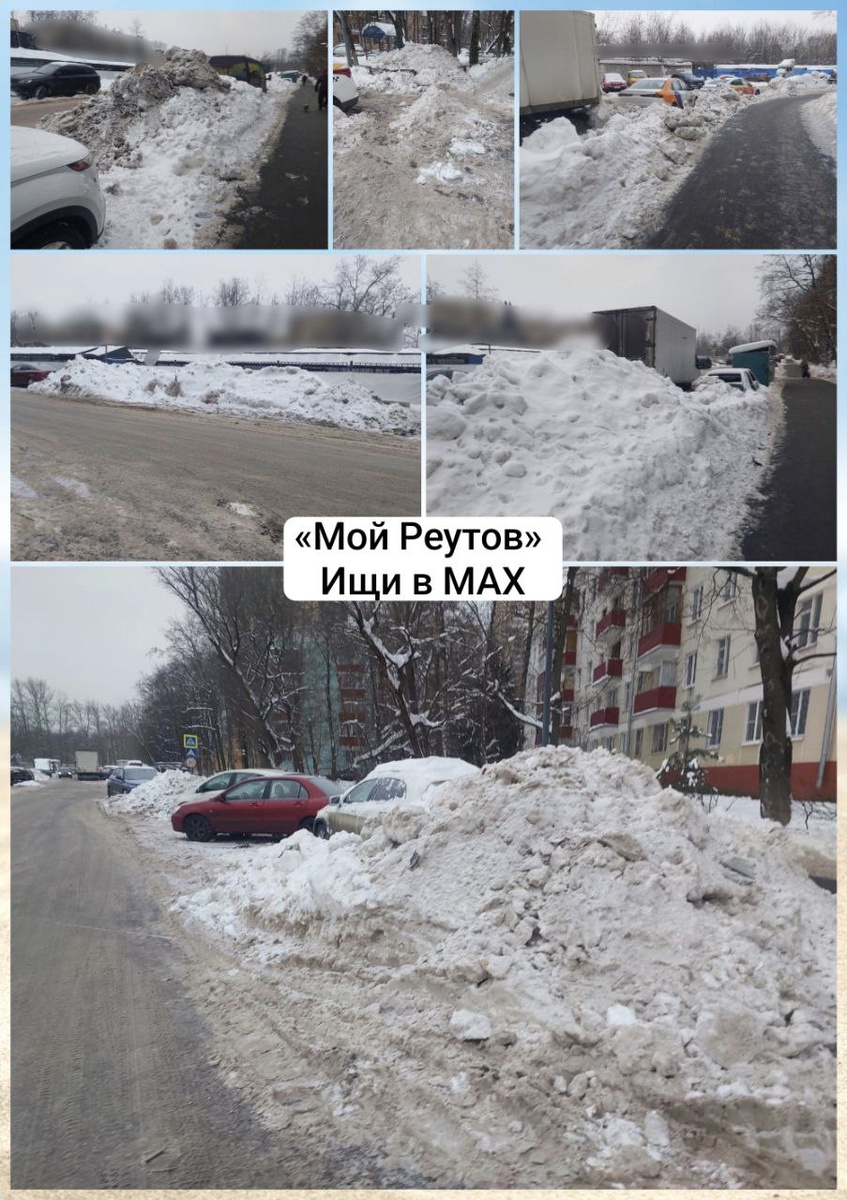Гагарина по пути к НПО. Все заваленo снегом неделю. Парковочные места все в горах снега. Разьехаться машины не могут. Когда это безобразие уберут. #отподписчиков 📲 «Мой Реутов» в MAX