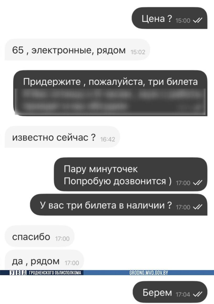 В конце декабря 25-летняя жительница Лиды хотела с семьей съездить на хоккей в столицу. У официального представителя билетов на игру не было, поэтому девушка подыскивала их на известной торговой интернет-площадке. В конце декабря 25-летняя жительница Лиды хотела с семьей съездить на хоккей в столицу. У официального представителя билетов на игру не было, поэтому девушка подыскивала их на известной торговой интернет-площадке. Жительница Лиды нашла продавца и связалась с ним. В ходе переписки ей сбросили схему посадочных мест, она выбрала подходящие, после чего оговорила способ оплаты и «доставки» билетов на электронную почту. Покупательница за три места перевела на банковский счет 195 рублей. Однако, как часто это бывает, продавец перестал выходить на связь, а позже и вовсе заблокировал собеседницу. Девушка поняла, что ее обманули, и обратилась за помощью в милицию. В настоящее время по данному факту возбуждено уголовное дело по статье «Мошенничество».