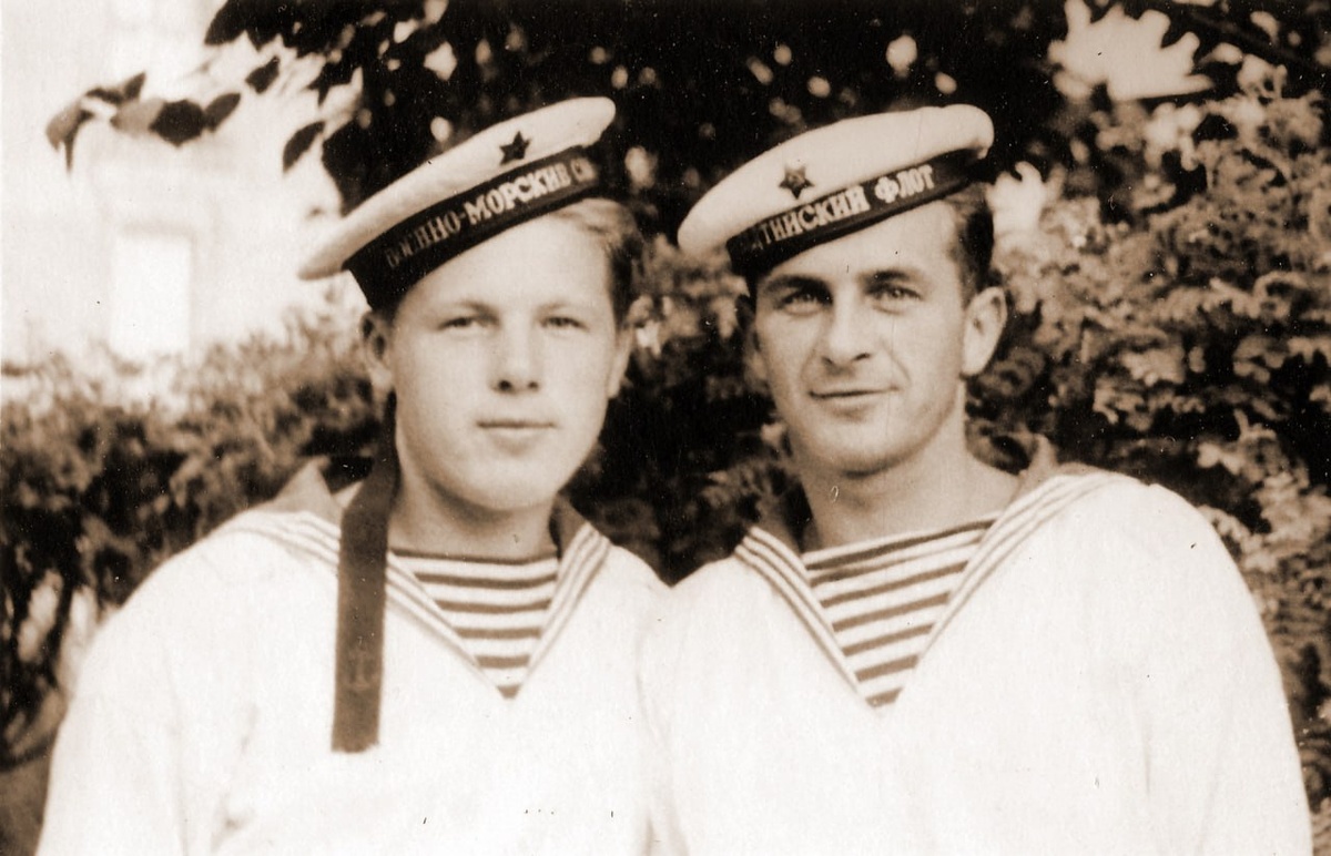 Матросы в летней хлопчатобумажной бескозырке с лентами "ВОЕННО-МОРСКИЕ СИЛЫ" и "БАЛТИЙСКИЙ ФЛОТ". На обороте - "На память Ниночке от Николая. Вспомни меня, когда утром проснешься и только откроешь глаза, вспомни еще раз моя дорогая, что есть милый друг, который вспоминает и любит тебя. 3 укр. фронт в дни Отечественной войны. 18.04.45 год.". Источник: отсканированная фотография из личной коллекции. #фото #матросы #ВМФ #Балтийский_флот #БФ