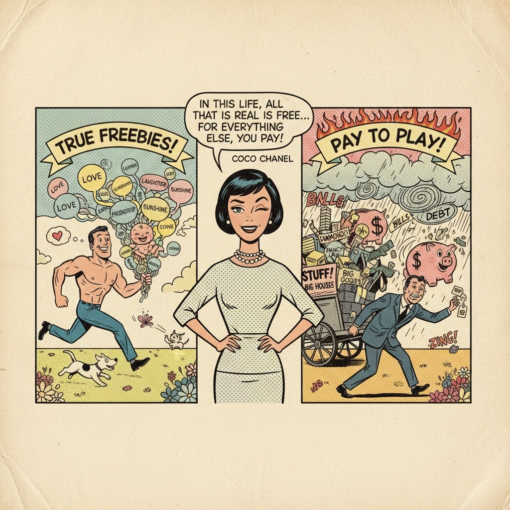 Великая Коко как-то обронила: «Все настоящее в жизни и самое ценное – бесплатно. За всё остальное надо платить». Мы киваем, примеряем на свою жизнь — и начинается самое весёлое. Потому что оказывается, под «бесплатным» скрывается самый дорогой ценник из возможных, просто валюта другая. Давайте пройдёмся по списку «бесплатного» с пониманием, что за всё хорошее придётся заплатить, но не всегда деньгами.
