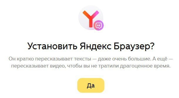Не возражаете ли Вы против установки Яндекс.Браузера?