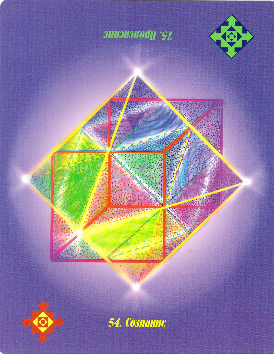 54 - СОЗНАНИЕ По мере вашей самоинтеграции обостряется ваше сознание. Доверьтесь своей способности видеть многомерность мира и проникать в суть вещей. Вам нужно научиться оставаться в сознании во всех обстоятельствах— приятных, нейтральных или болезненных. Вы можете обнаружить, что остаетесь в сознании даже во сне. Не позвольте другим людям заставить вас думать то, что угодно им. Верьте, что ваше сознание способно увидеть истинную сущность за любой маской или притворством. Вы можете оказаться в трудной ситуации — даже в тюрьме, — но ваше самосознание способно проникать сквозь стены, если вы в своих намерениях устойчиво придерживаетесь нейтралитета. Реактивные эмоции, такие как гнев или обида, быстро притупляют сознание. Утверждайте безмятежность и нейтралитет, и ваше сознание освободит вас. ИЩИТЕ ВЫХОД Визуализируйте и чувствуйте сознание как всеохватывающую способность бодрствовать и быть настороже. Сознание говорит: «Умей найти выход из любого положения и проникай сквозь фальш