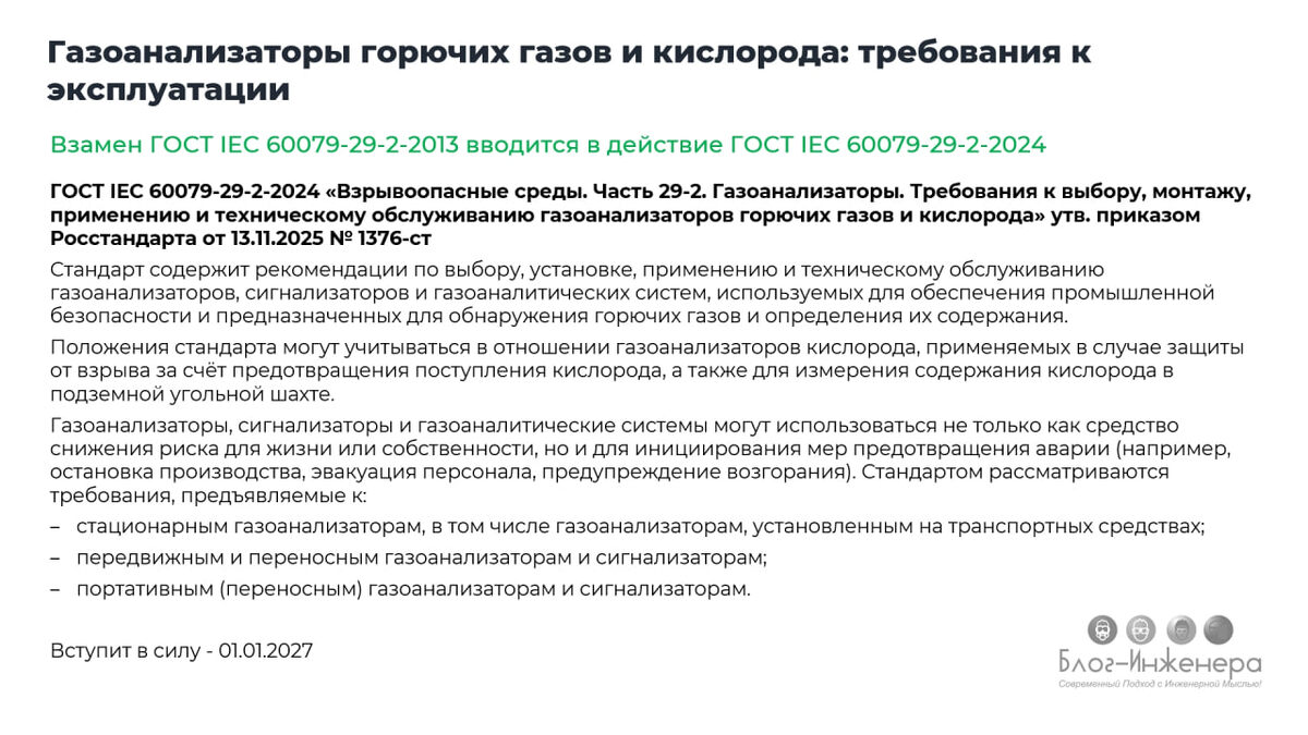 ⚠️ Росстандарт обновил стандарт с требованиями к эксплуатации газоанализаторов горючих газов. Скачать стандарт