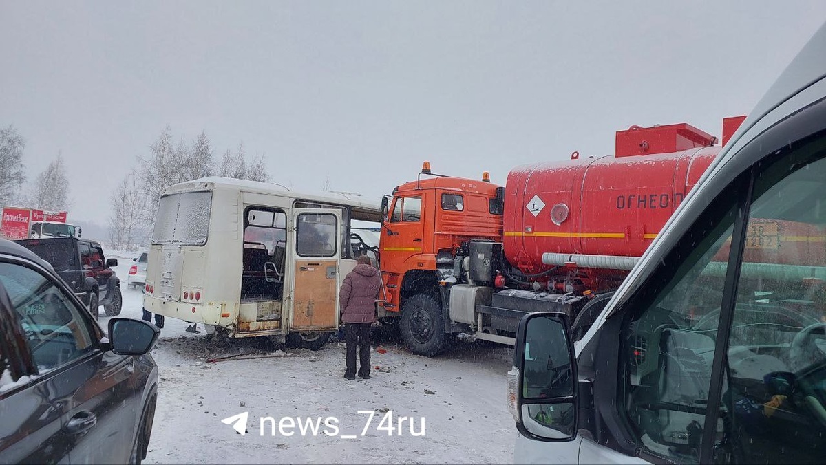 В ДТП с автобусом пострадали 14 человек Информацию подтвердили в дежурной части отдела МВД «Коркинский». «В Коркино травматологии нет, кого-то увезли в Еманжелинск, кого-то в Челябинск. Тяжелых нет, в основном травмы рук и ног», — сказал дежурный. На кадрах от очевидцев видно, что в результате ДТП легковушка и самосвал вылетели в кювет, а бензовоз и ПАЗ остались на дороге. Таким образом, судя по всему, в аварию попали четыре транспортных средства. Ждем подробностей от ГАИ по обстоятельствам аварии.