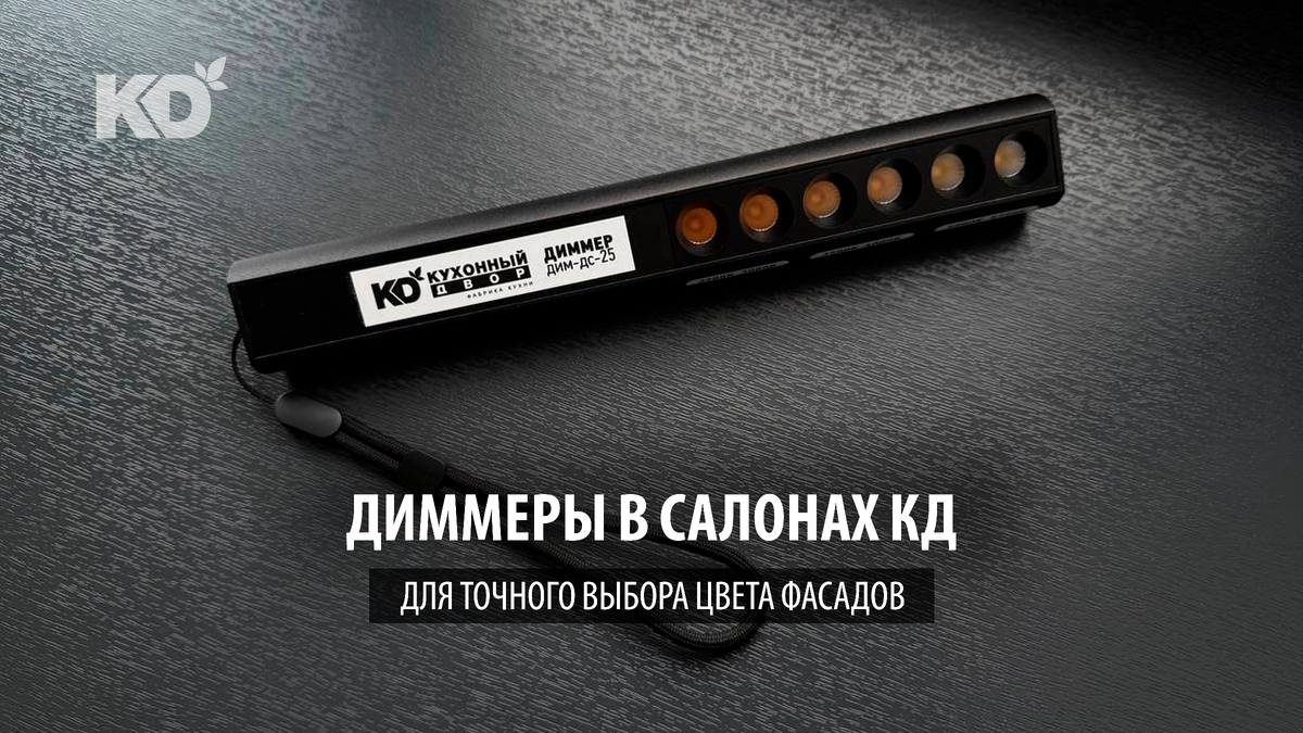 Цвет кухни — это не просто оттенок поверхности. Это настроение дома, атмосфера семейных встреч, уют ежедневных ужинов и первое впечатление от интерьера. Иногда в салоне или в каталоге цвет кажется одним, а дома при комфортном для вас свете — совершенно другим. Чтобы не прогадать с оттенком, в салонах бренда «Кухонный Двор» появились специальные диммеры для оценки фасадов при разном освещении. Обычно под словом «диммер» мы привыкли понимать устройство для регулировки яркости света. Но наш прибор выполняет намного более точную задачу: он показывает, как выбранный фасад будет выглядеть в разных условиях освещения — именно у вас дома. Это помогает избежать ситуации, когда: Теплота света меняет восприятие цвета. И наш диммер позволяет увидеть результат сразу, прямо в салоне. Диммер разработан специально для оценки оттенков фасадов и оснащён шестью встроенными LED-лампами, которые имитируют распространённые типы домашнего освещения: Диммер компактный и удобный — его можно поднести вплотную к