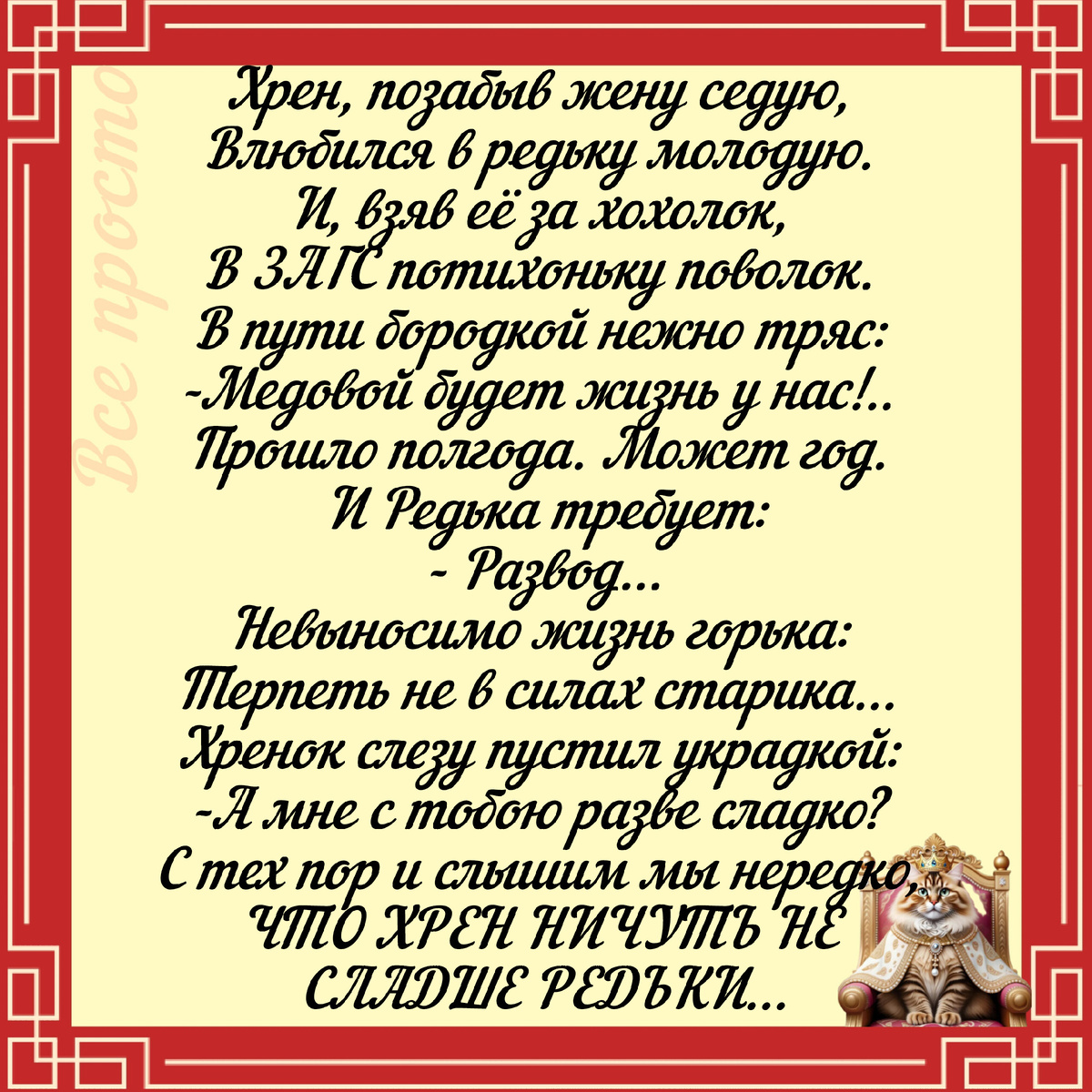 Хочу похудеть. Написала себе вечером записку «не жри!» и наклеила ее в холодильнике около колбасы. Посмотрела кино, пошла спать. Утром заглядываю, а там почерком мужа приписка: «понял, не буду». Приколист. Старый, но весёлый.