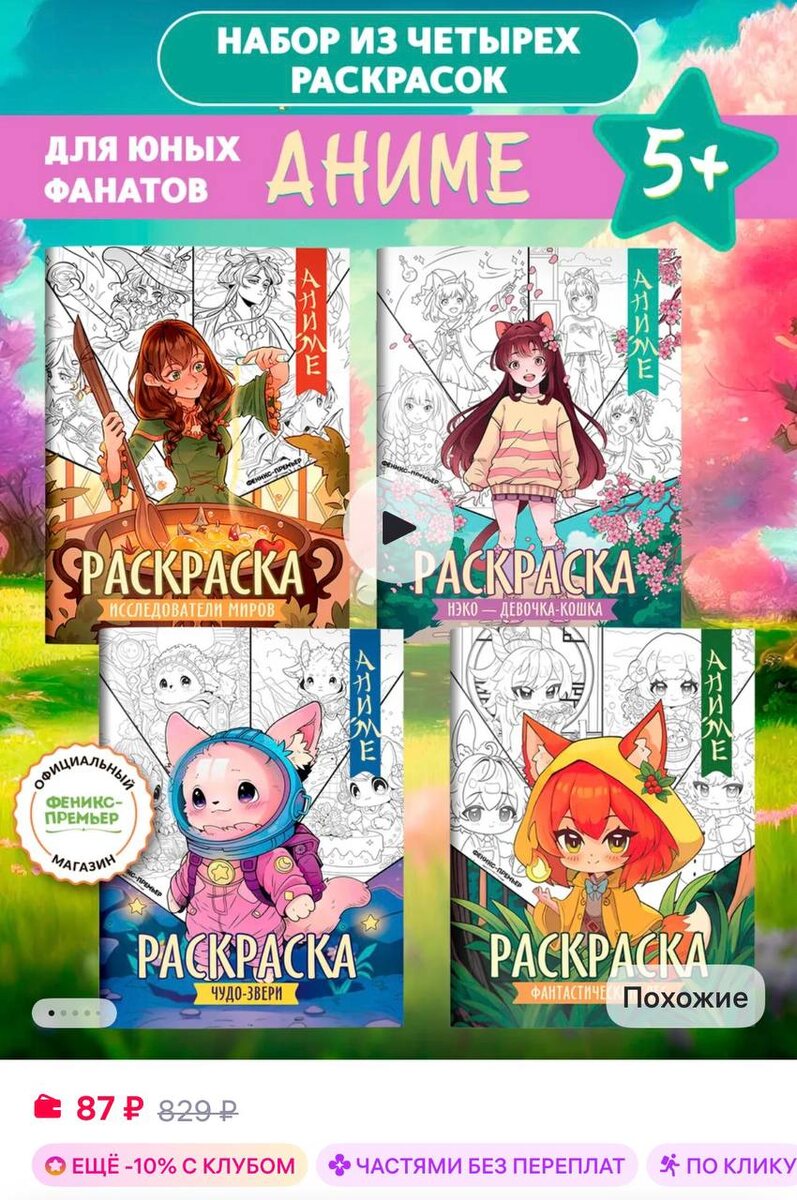 Феникс-премьер Комплект из 4 книг Аниме раскраски