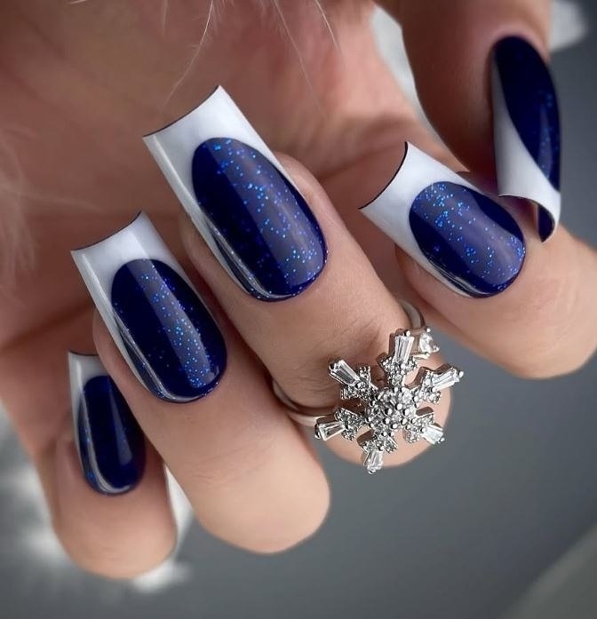 Синий зимний маникюр 2026