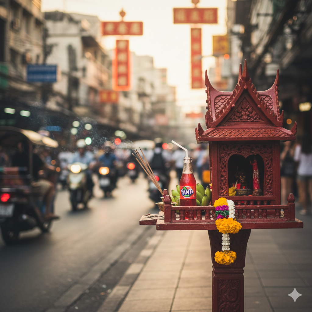 Вы наверняка замечали это сотни раз. Возле роскошных отелей Бангкока, у массажных салонов Паттайи или просто на крыльце 7-Eleven стоят маленькие домики, заставленные открытыми бутылками с ярко-красной жидкостью. И всегда - с трубочкой. Это не флешмоб и не рекламная акция газировки. Это один из самых удивительных культурных кодов Таиланда, разгадка которого уходит корнями в глубокую древность. Раскрываем тайну Красной Фанты. Для неподготовленного туриста это выглядит странно: зачем предлагать духам химическую газировку? Неужели они сладкоежки? На самом деле, всё дело не во вкусе, а в цвете. Таиланд - страна буддийская, но буддизм здесь тесно переплетен с древним анимизмом (верой в духов). У каждого клочка земли есть свой дух-хранитель (Пхра Пхум), и для него строят те самые красивые домики на ножке. Тысячи лет назад, чтобы задобрить духов и попросить защиты или удачи, люди приносили в жертву животных. Красный цвет символизировал кровь - жизненную силу. С приходом буддизма убийство живот
