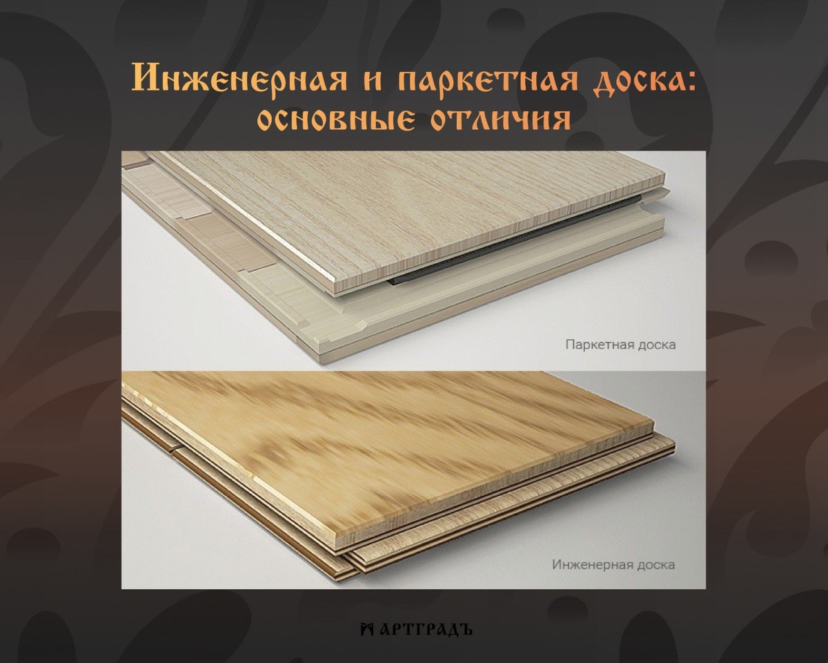 Выбирая деревянный пол, многие путают паркетную и инженерную доску. Внешне они похожи: натуральный верхний слой, многослойная конструкция для прочности. Но ключевые отличия — в составе, монтаже и возможностях. 🔸Главные отличия: 1️⃣Способ укладки: Паркетная доска — укладывается «плавающим» способом на подложку. Доски соединяются замками, без клея. Это проще и часто подходит для DIY. Инженерная доска — жёстко клеится к идеально ровному основанию (фанере или стяжке). Требует мастерства и профессионального монтажа. 2️⃣Конструкция «сэндвича»: Паркетная доска — многослойная (стабилизирующий, несущий, декоративный слои). Основа часто из древесины. Инженерная доска — обычно двухслойная: влагостойкая фанера + толстый слой ценной древесины. Декоративный слой только из массива, шпон не допускается. 3️⃣Соединение элементов: Паркетная доска — современный замковый механизм (Click). Инженерная доска — традиционное соединение «паз-шип». Хотя сейчас появляются и замковые варианты. 4️⃣Габариты и д