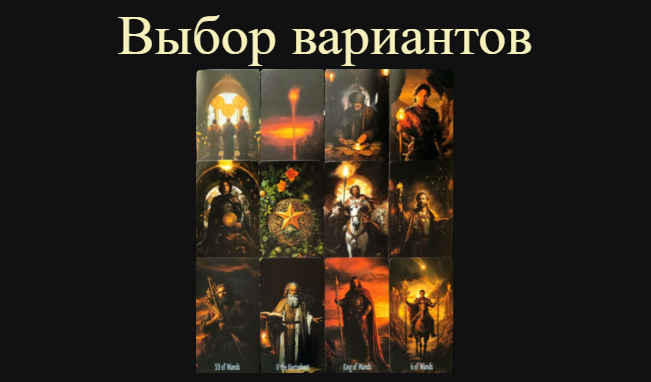 Первая карта в каждой линии означает эмоциональные влияния и удовлетворенность, возникающие в результате каждого решения - что произойдет в мире чувств.