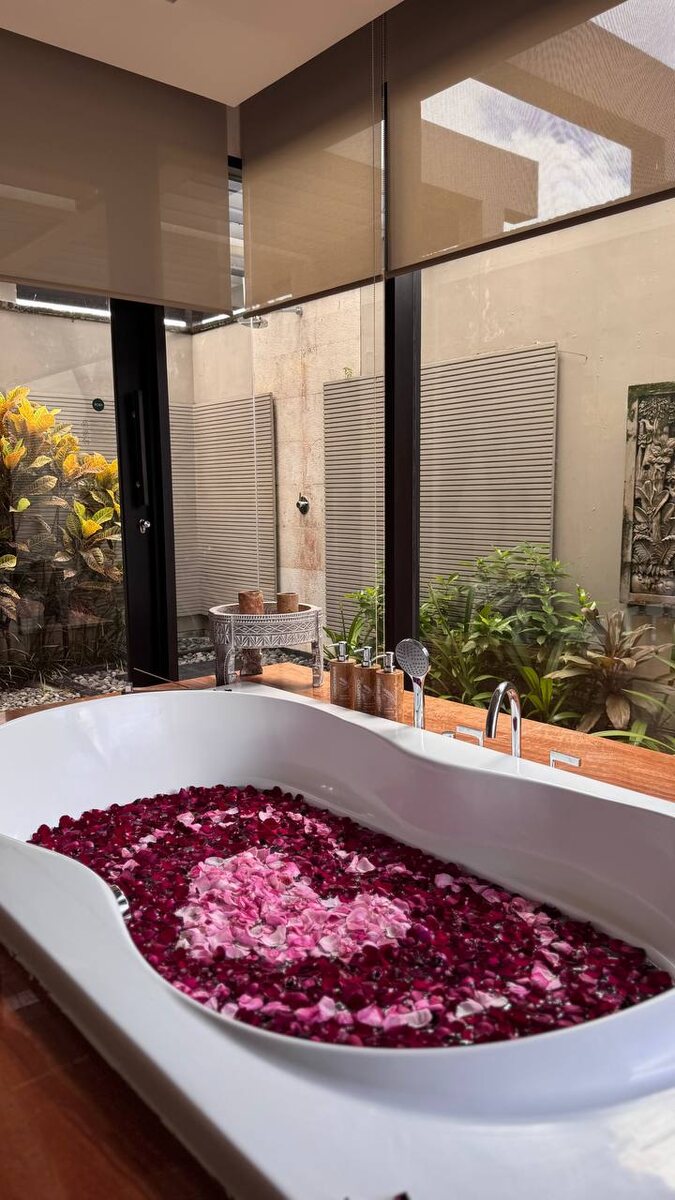Хотелось выдохнуть и просто побыть в красивом месте. По совету нашего менеджера Татьяны, которая была здесь в рекламном туре буквально в октябре, я решила забронировать Umana Bali. И ни чуть не прогадала. Отель шикарный. Очень красивый, атмосферный, с прекрасным сервисом и внимательным обслуживанием. Еда действительно очень вкусная, это тот случай, когда к ресторану вообще нет вопросов. Мы жили в приватной вилле, и даже минимальная категория здесь это полноценное пространство: спальня, большая ванная комната с гардеробной, два санузла, гостиная зона и свой большой бассейн, в котором реально можно поплавать. По территории отеля удобно перемещаться на багги. Вызываешь сервис и тебя отвозят куда нужно. Всё бесплатно. Также есть бесплатный трансфер на пляж. У отеля там свой бич-клаб. Трансфер ходит в течение дня постоянно, каждый час. На пляже есть бассейн, можно покушать. И, кстати, еда в бич-клабе мне понравилась даже больше, чем в самом отеле. Океан здесь просто шикарный, пейзажи н