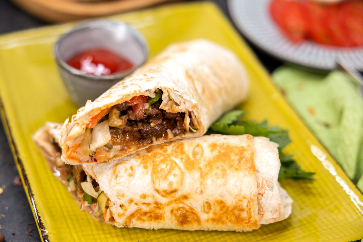 Домашняя шаурма – тот самый случай, когда уличная классика вдруг становится продуманным, насыщенным и по-настоящему гастрономичным блюдом. Здесь нет спешки и случайных ингредиентов: каждый элемент работает на вкус, текстуру и баланс. Хруст, сочность, кислинка, сладость, пряность – все собрано в одном плотном, горячем свертке, который приятно держать в руках и невозможно есть без удовольствия. • Капуста белокочанная – 150 г • Сахар – 25 г • Столовый уксус 9% – 25 мл • Масло растительное – 55 мл • Огурец – 30 г • Перец сладкий – 30 г • Красный лук – 15 г • Огурец соленый – 20 г • Томат красный – 60 г • Перец чили – 10 г • Лук репчатый – 40 г • Чеснок – 2 зубчика • Укроп – 2 веточки • Петрушка – 2 веточки • Зеленый лук – 1 перо • Кетчуп – 100 г • Майонез – 90 г • Трюфельное масло – 15 мл • Говядина мраморная – 250 г • Соевый соус – 25 мл • Перец черный молотый и соль – по вкусу • Масло сливочное – 50 г • Лаваш – 100 г Начинаем с овощной части – она здесь не просто «для свежести», а полноц