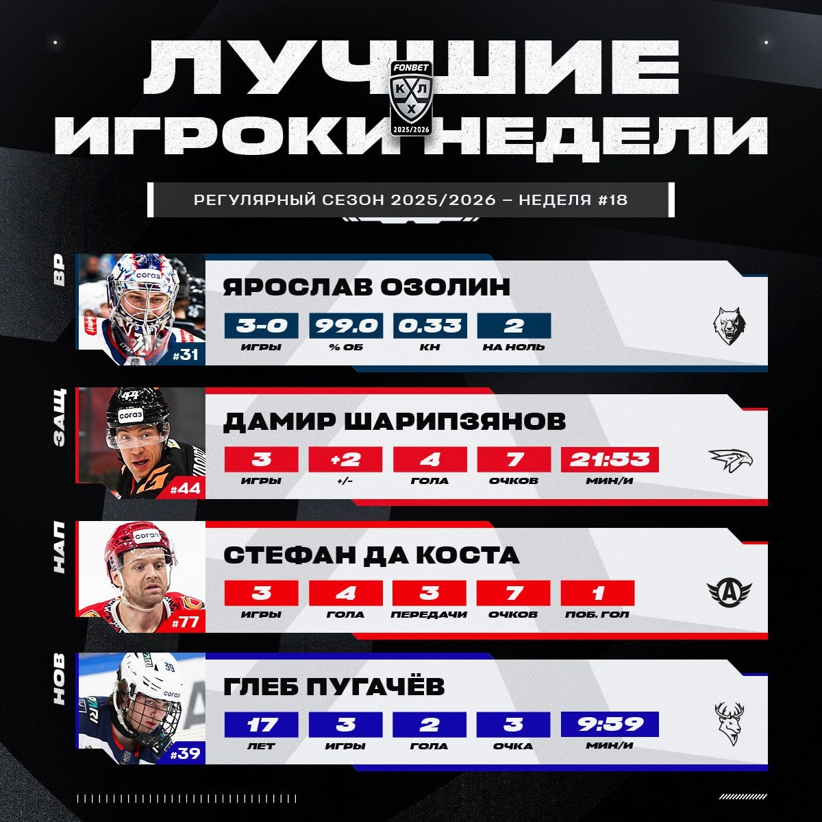 КХЛ определила лучших игроков 18-й недели сезона 2025/2026