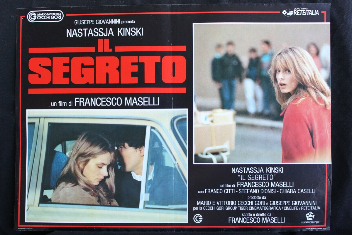 Секрет / Il segreto. Италия, 1990. Режиссер и сценарист Франческо Мазелли. Актеры: Настасья Кински, Стефано Дионизи, Франко Читти, Кьяра Казелли и др. Драма. Премьера: 16.02.1990. Прокат в Италии: 25 тыс. зрителей. Лючия (Настасья Кински) работает официанткой, а Карло (Стефано Дионизи) — курьером в службе доставки. Между ними вспыхивает чувство, и они решают жить вместе. Через дорогу от их дома живет Франко, человек необычный и в чем-то загадочный… В год выхода драмы Франческо Мазелли «Секрет» итальянская пресса отнеслась к ней вполне доброжелательно. Так рецензент Segnalazioni Cinematografiche писал, что «в этом «секретном» фильме Франческо Мазелли представляет запутанное и амбициозное произведение. Режиссёр тщательно прорабатывает персонажей» (Segnalazioni Cinematografiche. 1990). К сожалению, как и предыдущий фильм Франческо Мазелли – экспериментальный «Личный код» – «Секрет» (несмотря на то, что главную роль в нем сыграла весьма популярная в ту пору Настасья Кински) не имел успеха