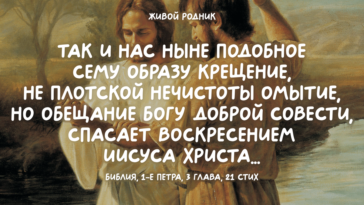 Тогда приходит Иисус из Галилеи на Иордан к Иоанну креститься от него. Библия, от Матфея, 3 глава, 13 стих 19 Января — Крещение Господне. Что это значит для нас сегодня? Неужели не знаете, что все мы, крестившиеся во Христа Иисуса, в смерть Его крестились? Итак мы погреблись с Ним крещением в смерть, дабы, как Христос воскрес из мертвых славою Отца, так и нам ходить в обновленной жизни... ...Зная то, что ветхий наш человек распят с Ним, чтобы упразднено было тело греховное, дабы нам не быть уже рабами греху. Библия, Римлянам, 6 глава, 3-6 стихи Голгофский крест — это символ распятия и погребения грешной человеческой природы! Водное крещение — это символ приобщения к распятию и погребению ветхой природы каждого, кто в это уверует и согласится! Водное крещение — это наше личное согласие на распятие и погребение всего-всего нашего, всего того, что мы из себя представляем. Наш ум, таланты, эмоции, способности должны пройти через Голгофский крест. Голгофский крест должен коснуться всего, ке