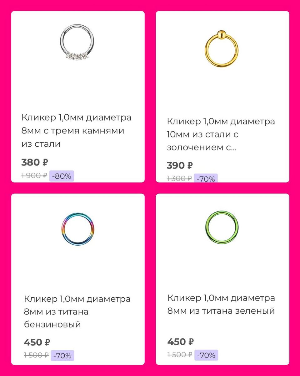 Абсолютно весь пирсинг попал в раздел распродажи! 1-3 пирсинг на ухо: колечки, лабреты и накрутки 4-6 пирсинг в нос: нострилы, колечко, септумы 7 пирсинг на пупок 8 остальной пирсинг 9 цепочка, чтобы соединять любые пирсинги и соседние серьги Весь пирсинг ТУТ Пополнения по этим позициям не будет! Так что это final sale 📢 🙂