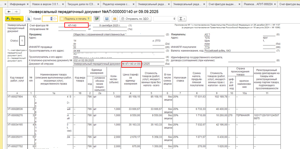 Вызываем функции технического специалиста В списке префиксов находим наш, открываем для редактирования и снимаем флажок "Печатать префикс" После чего нажимаем "Записать и закрыть". После этих действий, префикс в номере документа при выводе на печать отсутствует