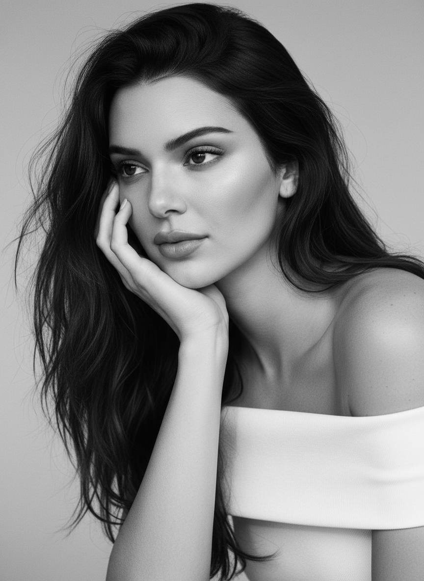 Использовать загруженное фото как единственный эталон внешности. Строго сохранить внешность пользователя 1:1 — лицо, кожу, возраст, черты, форму губ, носа, глаз, бровей, волосы и пропорции без изменений. Фотореалистичный студийный портрет, крупный план по плечи. Женщина развернута к камере под углом, правое плечо ближе к объективу, корпус слегка повернут в влево, голова мягко наклонена в бок, повернута влево, опирается на ладонь левой руки, взгляд направлен в сторону, не в камеру. Выражение мягкое, задумчивое, лёгкая полуулыбка. Боковой пробор волос. Волосы волнистые, распущенные, с небрежной текстурой, сильно растрепанные. Одежда: белый плотный топ с открытыми плечами, минималистичный. Свет мягкий студийный, направленный сбоку, подчёркивает скулы и губы, плавные тени. Фон однотонный светлый студийный. Чёрно-белая фотография, высокий контраст, кинематографичная эстетика, плёночное ощущение, высокая детализация, без ретуши, fashion portrait. Начало - аналогично генерации фотографий. О