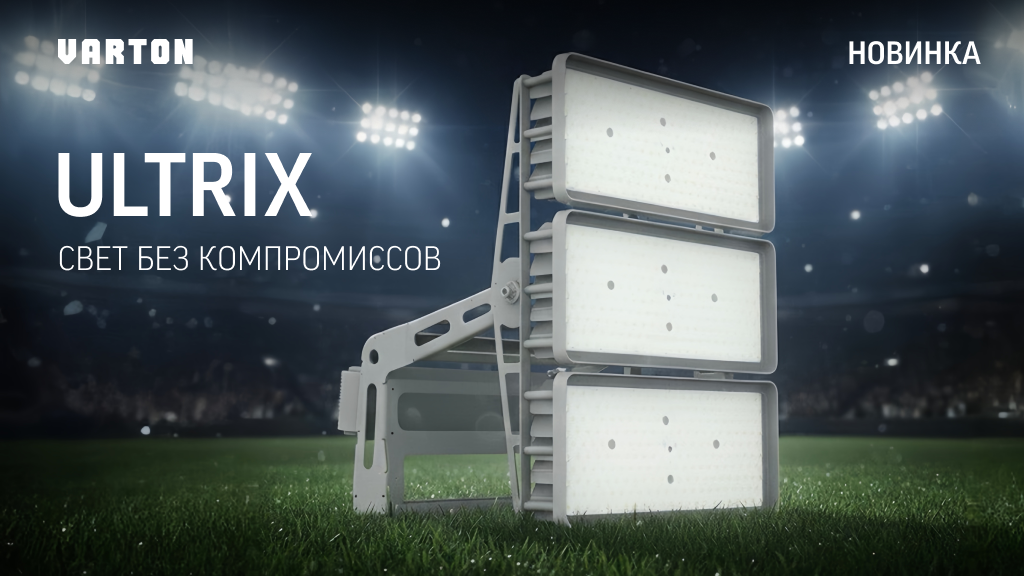 Искусственное освещение в спорте перестало быть утилитарной функцией, оно стало ключевым соавтором атмосферы, тем, что превращает игру в спектакль, а зрителя — в сопричастного участника. Но за магией чистого, яркого и равномерного света стоит не волшебство, а высочайшая инженерная мысль. Так родился прожектор Ultrix — результат преодоления сложнейших технических вызовов. Прожектор должен был стать не только максимально мощным, легким и компактным, чтобы минимизировать нагрузку на мачты и металлоконструкции, но и бескомпромиссно точным — без рассеивания и потерь, каждый луч достигает строго заданной точки на поле, обеспечивая идеальную освещенность и равномерность. Ответом стало решение VARTON CristalLight Solution — инновационная линза, которая концентрирует световой поток, направляя его точно в цель с минимальными потерями, что позволяет достигать выдающихся показателей эффективности и значительной экономии энергии. Мощные и надежные светодиоды 3535 из керамики генерируют огромную теп
