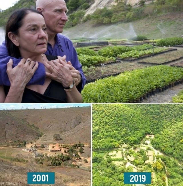 В 1998 году отмеченный наградами фотограф и фотожурналист Себастьян Сальгадо и его жена Лелия Делуиз Ваник Сальгадо основали Instituto Terra - заповедник и некоммерческую организацию на участке площадью 1750 акров расположенном в штате Минас-Жерайс, Бразилия, примерно в 100 милях от побережья Атлантического океана, в долине реки Риу-Доси. Так началась их деятельность по возрождению экосистемы. Начиная с 100 000 саженцев, подаренных местной горнодобывающей компанией, они вручную возродили целую экосистему, высадив 2 миллиона деревьев. Их титанический труд вернул к жизни 293 вида растений и сотни животных, которые исчезли с этих земель десятилетия назад. Телеграм: https://dzen.ru/id/651983a11cf2387b25169947