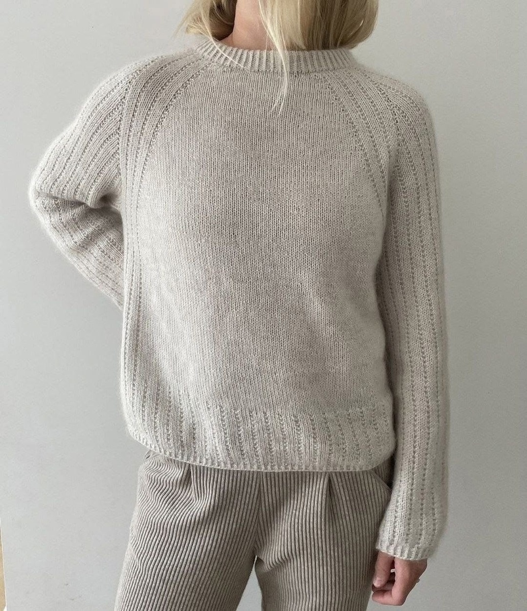 Конструкция: Свитер вяжется сверху вниз, реглан. Горловина формируется укороченными рядами (немецкий способ). Воротник двойной.
