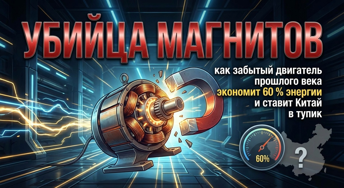 Представьте себе мир, в котором каждый насос на заводе, вентилятор в шахте и компрессор на станции потребляют в два раза больше энергии, чем нужно. А теперь представьте, что счета за электроэнергию растут ещё быстрее из-за того, что цена на ключевую деталь современных двигателей — неодимовые магниты — диктуется одним игроком на планете. Эта невыдуманная реальность — главная боль промышленности. И лекарство от неё уже есть. Это технология SRM (Switched Reluctance Motor) или, говоря по-русски, вентильно-реактивный двигатель (ВРД). И пока мир ищет сложные пути, в России уже созданы решения, которые меняют правила игры. Всё дело в том, чтобы отказаться от того, за что нас держат, — от магнитов.