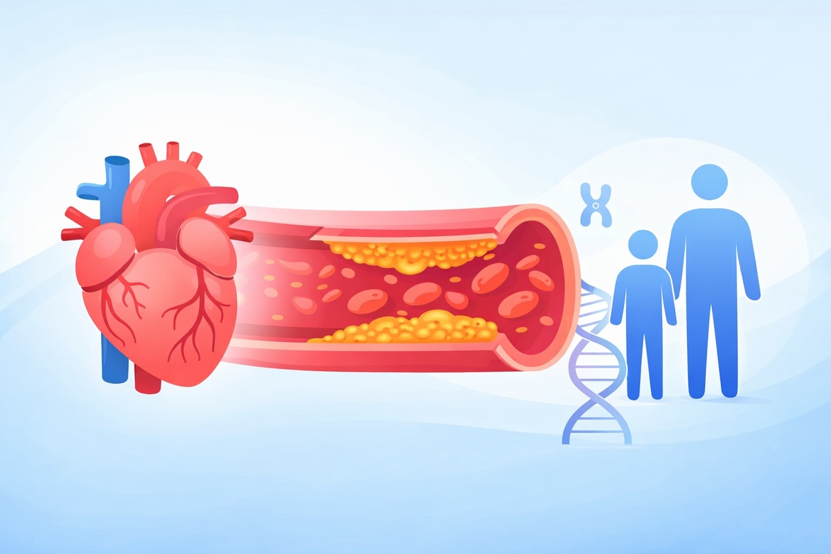 Семейная гиперхолестеринемия (СГ) — это наследственное заболевание, при котором в организме накапливается слишком много холестерина и жиров. Когда холестерин откладывается в стенках артерий сердца, это может привести к инфарктам. Люди с этим заболеванием могут переносить инфаркты в очень молодом возрасте, иногда даже в детстве. СГ передается по наследству. Существует 2 основные формы: Какие симптомы у СГ? Самое серьезное проявление — инфаркт миокарда. Но благодаря современным лекарствам частота инфарктов у людей с СГ значительно снизилась. СГ также может вызывать образование плотных жировых отложений под кожей — так называемых ксантом. Они могут появляться на разных участках тела: на пятках, вокруг коленей или локтей, вокруг глаз. Как диагностируется СГ? Стандартные анализы крови на холестерин могут показать, что его уровень необычно высок. В этом случае врач проведет дополнительное обследование, чтобы выяснить причину и определить, не является ли проблемой СГ. Детям рекомендуется сдав
