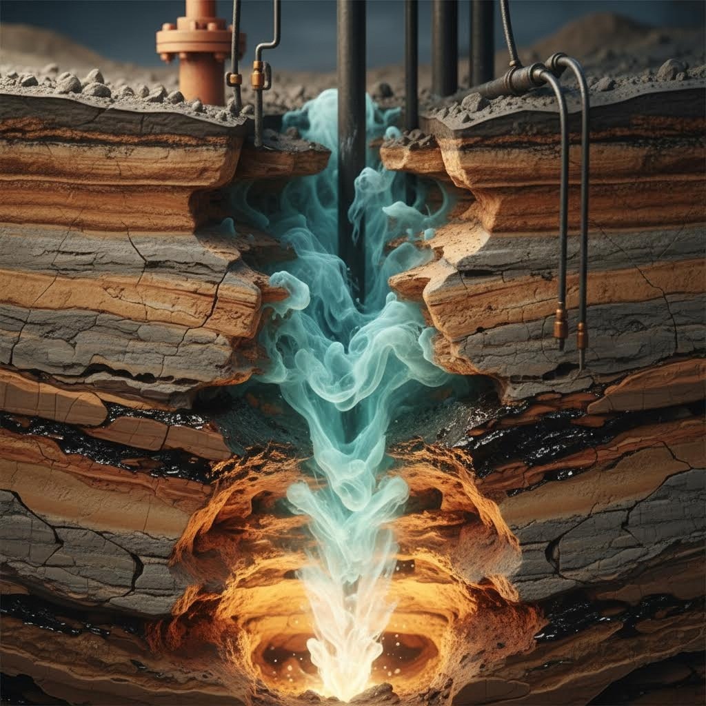 · Глубина залегания: Месторождения газа находятся на глубине, как правило, от 1 до 5+ километров. Между нами и газом — километры плотных горных пород, которые служат надежным естественным барьером.