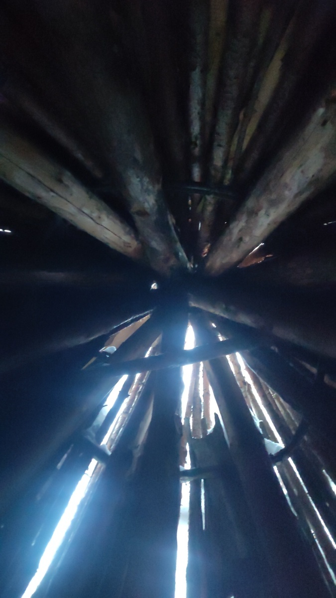 Сначала, мы попали в тропу, где по кругу расположены были жилища населения таёжной и лесостепной полосы, дома из коры.