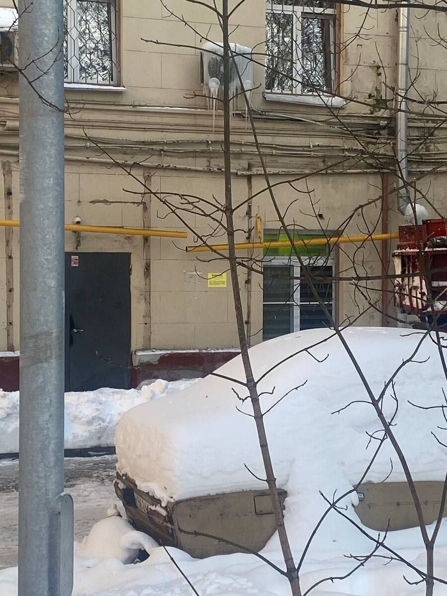 На Проспекте Мира, 103 сотрудники Жилищника чистили крышу от сосулек и льда и сломали газовую трубу