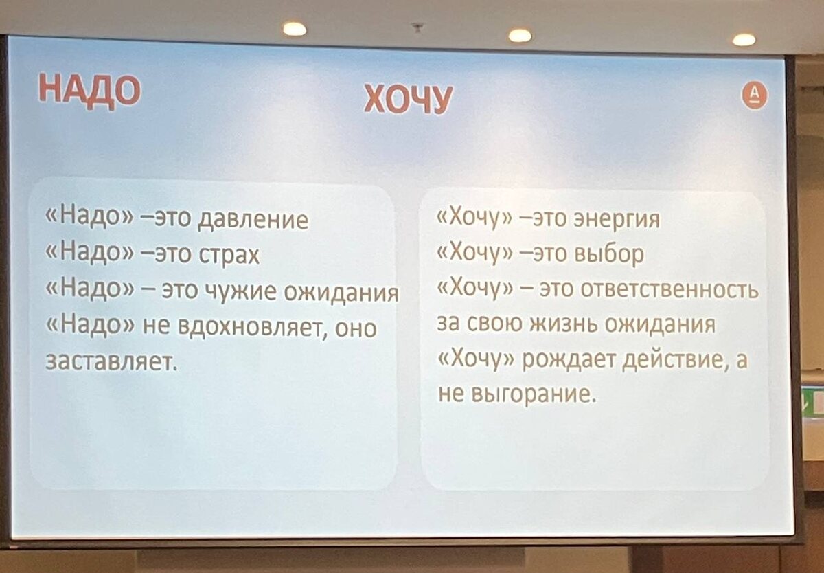 ». И я думаю то, что у меня много видов деятельности- это как раз и об этом тоже. Все мои деятельности объединяет одно-это взаимодействие с людьми. Я организовываю мафию и настольные игры и для детей, и для взрослых. Я провожу праздничные мероприятия,и каждый раз получаю приятные слова. Кому-то из вас я проводила консультации по психологии, и это тоже про взаимодействие и желание помочь вам. Несколько месяцев назад я стала партнёром Альфабанка и это тоже про работу с командой и взаимодействие с людьми. Поделюсь слайдом с обучения для партнеров, которое проходило в Москве. А вы действуйте из состояния «Надо» или из состояния «Хочу»? И кому интересен дополнительный доход от официального канала банка, без вложений, пишите мне в директ @nastya_demitriyadi