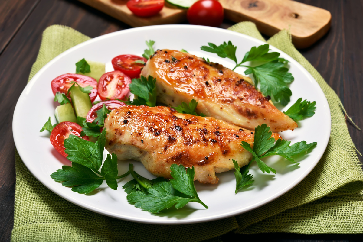 Как готовлю: слегка отбиваю, натираю солью и перцем, смазываю маслом и лимоном. На разогретой сковороде жарю 3–4 минуты с каждой стороны на сильном огне до золотистой корочки. Даю отдохнуть 2 минуты и режу поперёк волокон. Подаю с быстрым салатом из помидоров и рукколы. Совет: не пересушивай — внутри грудка должна оставаться влажной.