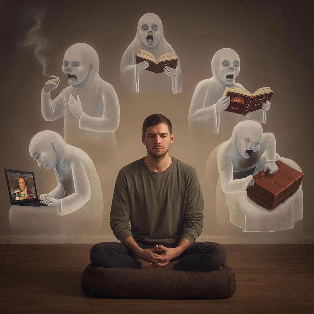 ДИСКЛЕЙМЕР: автор против наркотических и психотропных веществ, их употребление может обернуться трагическими необратимыми последствиями. Ни в коем случае не призываю к употреблению. Написано для ознакомления. Я провалил медитацию трижды. Я дал заднюю перед випассаной, к которой готовился, в день выезда. Моим первым «гуру» был...косяк. Если вы тоже думаете, что «медитация — это не для вас», потому что не можете усидеть и пяти минут — вы читаете правильную историю. Историю главного прокрастинатора осознанности. Стимул был дикий: мне понравилось состояние изменённого сознания от травы, но пугала перспектива тупеющего разума. «А можно ли так же, но без веществ?» — задался я наивным вопросом. Параллельно я читал Пелевина («Generation П» — это же почти учебник по дзену для хипстеров!) и поверхностно интересовался буддизмом. На выходе получился коктейль: желание «кайфануть духовно» + Пелевин + смутное понимание, что «надо следить за дыханием». Я нашёл какой-то аудиокурс, где приятный голос 10