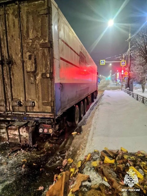 На улице Кутузова в Смоленске произошло возгорание внутри холодильной установки прицепа, перевозившего охлаждённое мясо птицы. Об этом сообщили в пресс-службе регионального ГУ МЧС России. Во время движения у большегруза внезапно загорелось холодильное оборудование прицепа. Из него начал валить дым, а затем появилось открытое пламя. На место происшествия прибыли пожарные, которые смогли быстро локализовать возгорание и не дать огню распространиться на тягач и другие части прицепа. В результате инцидента перевозимая продукция частично повреждена огнём, высокой температурой и копотью. К счастью, водитель не пострадал. В настоящее время специалисты устанавливают точную причину возгорания. Среди возможных версий рассматриваются нарушения при загрузке товара или неисправность в работе холодильной установки. Ранее сообщалось, что семь пожаров потушили в Смоленской области за сутки. Фото: ГУ МЧС по Смоленской области