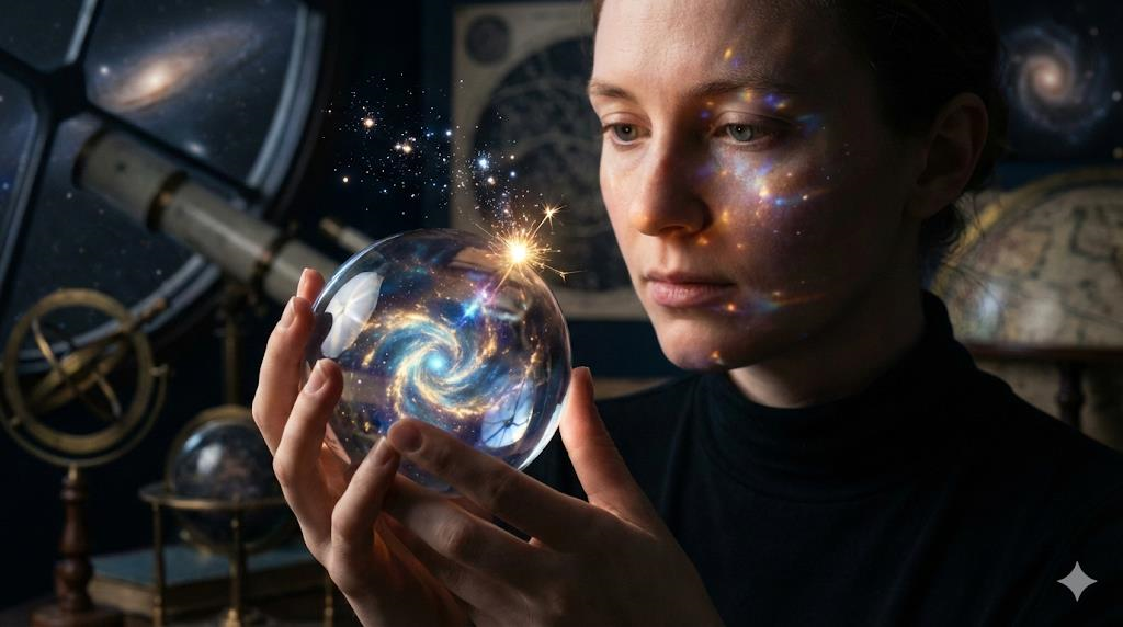 Представьте абсолютно пустую комнату, в которой нет даже стен, — только бесконечный, густой и холодный мрак. Вы один, и у вас нет даже спички, чтобы увидеть собственные ладони. Примерно так выглядела Вселенная спустя несколько сотен тысяч лет после Большого взрыва: пространство уже существовало, но в нём не горел ни один огонёк. Это были «тёмные века» — не просто отсутствие света, а отсутствие условий, в которых могла бы оформиться жизнь. Иногда возникает странная мысль: каково быть свидетелем такой тишины? Не тишины как паузы между звуками — а тишины как запрета на биографию материи. Без света и без тяжёлых атомов мы оставались бы лишь гипотетической вероятностью в математическом уравнении, и даже само слово «мы» было бы лишним. Но затем произошёл тот самый «щелчок», после которого реальность уже не могла вернуться к прежней немоте. Когда первичный хаос утих и Вселенная стала прозрачной, её наполнил скучный газ — водород и гелий. Ни планет, ни металлов, ни кислорода для вдоха — только