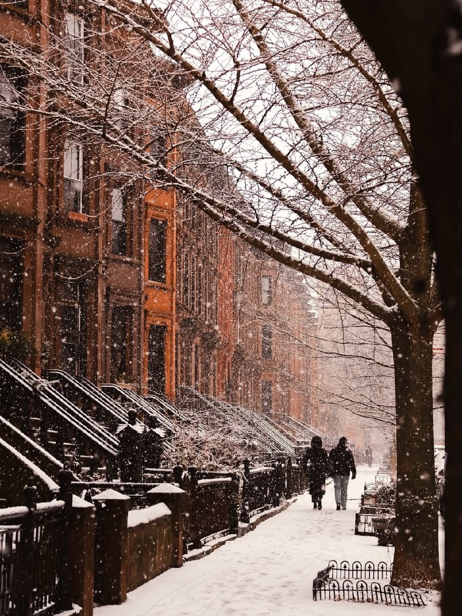 Снежный уик-энд в Бруклине. Мне очень нравится, как снег контрастирует с темными коричневыми каменными домами ❄️🤎