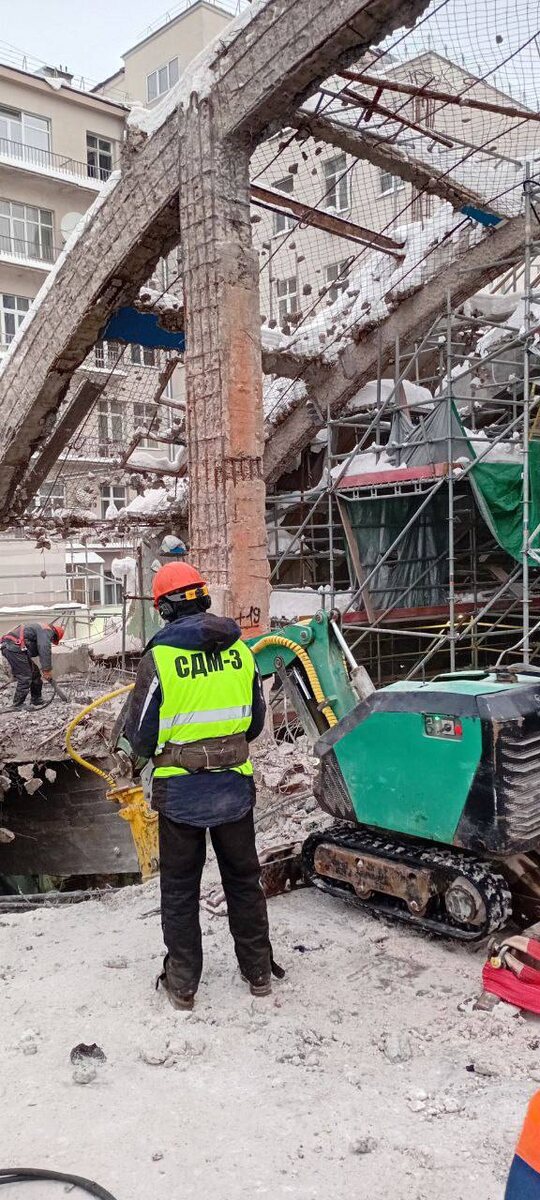 ООО «СДМ-3» приступил к выполнению работ по демонтажу плиты покрытия с применением систем малой механизации, а именно бетонолом 2000
